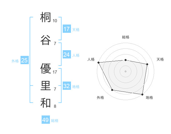 桐谷 優里和さんの天格は17画の4点!