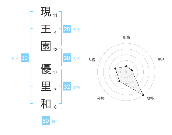 現王園 優里和さんの総格は60画の1点