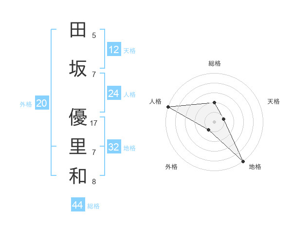 田坂 優里和さんを姓名の画数から五運を鑑定