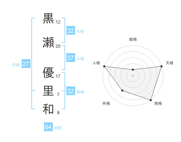 黒瀬 優里和さんを姓名の画数から五運を鑑定