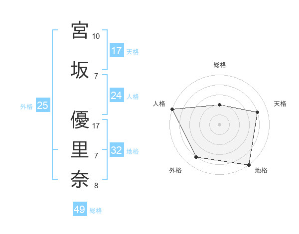 宮坂 優里奈さんを姓名の画数から五運を鑑定