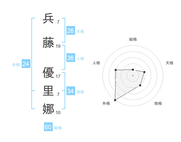 兵藤 優里娜さんを姓名の画数から五運を鑑定
