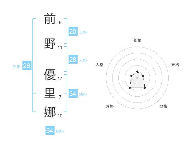 前野 優里娜さんの天格は20画の1点!
