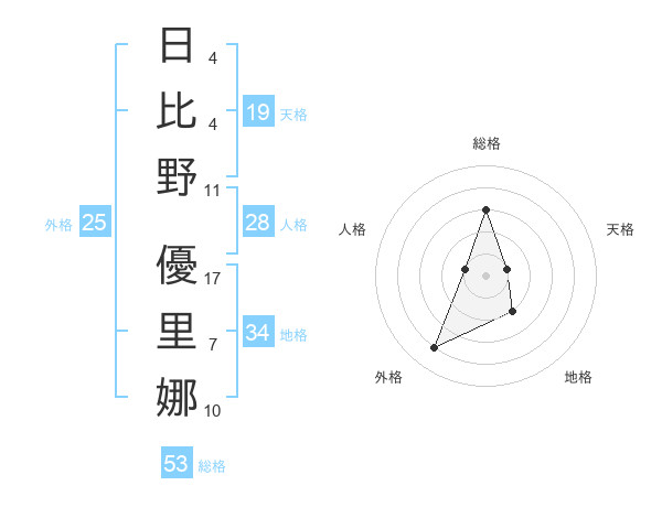 日比野 優里娜さんを姓名の画数から五運を鑑定