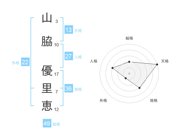 山脇 優里恵さんの天格は13画の5点!