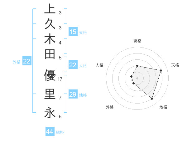 上久木田 優里永さんを姓名の画数から五運を鑑定