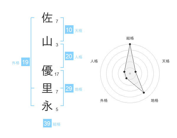 佐山 優里永さんの総格は39画の5点!