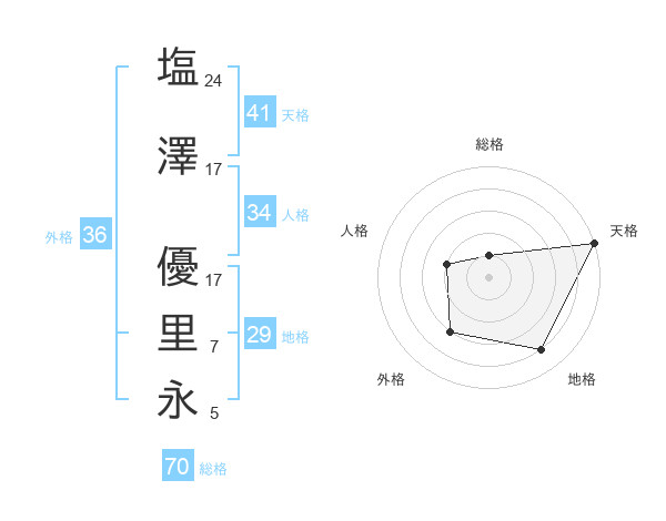 塩澤 優里永さんを姓名の画数から五運を鑑定