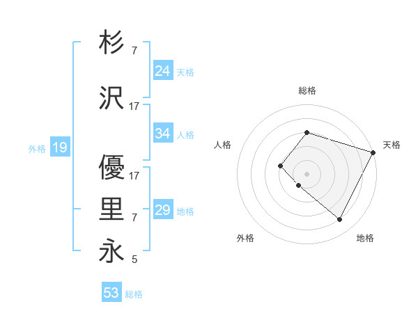 杉沢 優里永さんの天格は24画の5点!