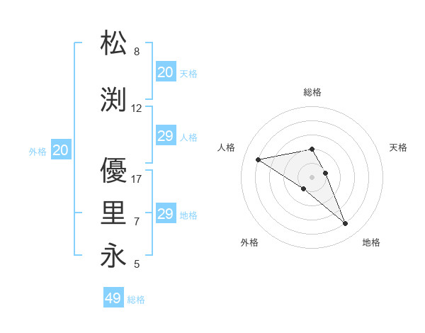 松渕 優里永さんを姓名の画数から五運を鑑定