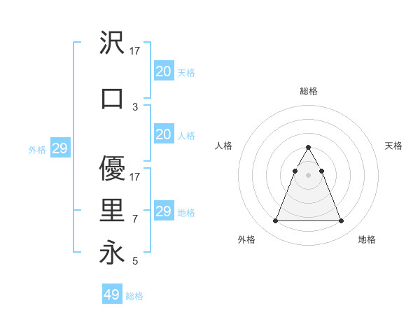 沢口 優里永さんの天格は20画の1点!