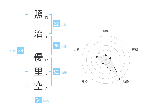 照沼 優里空さんを姓名の画数から五運を鑑定