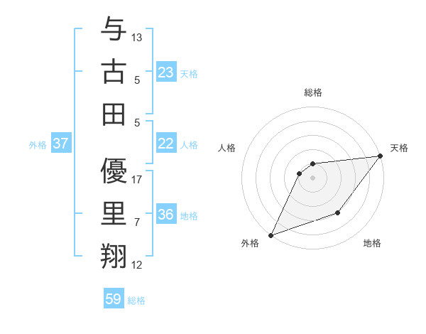 与古田 優里翔さんを姓名の画数から五運を鑑定