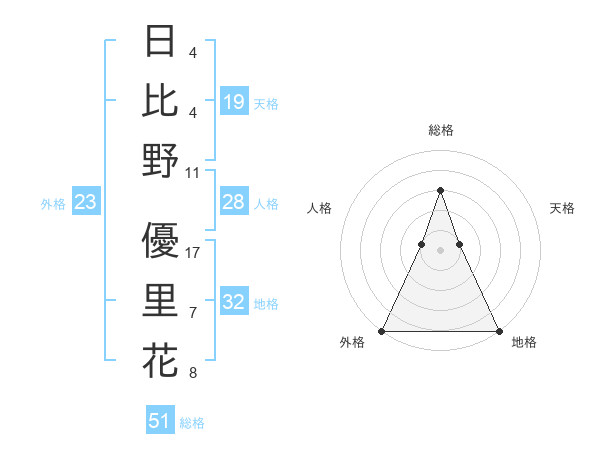 日比野 優里花さんを姓名の画数から五運を鑑定