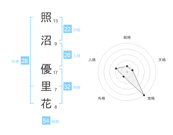 照沼 優里花さんを姓名の画数から五運を鑑定