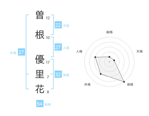 曽根 優里花さんを姓名の画数から五運を鑑定