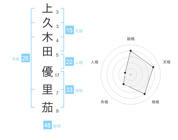 上久木田 優里茄さんを姓名の画数から五運を鑑定