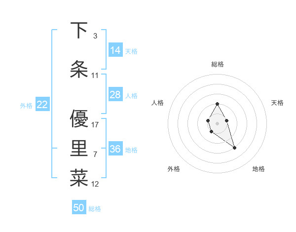 下条 優里菜さんを姓名の画数から五運を鑑定
