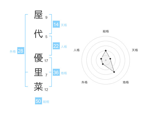 屋代 優里菜さんを姓名の画数から五運を鑑定