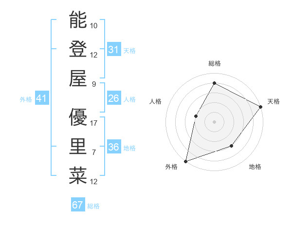 能登屋 優里菜さんの総格は67画の4点!