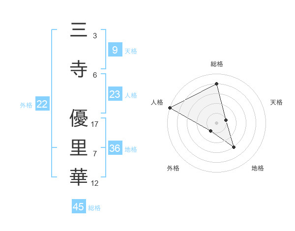 三寺 優里華さんの総格は45画の4点!