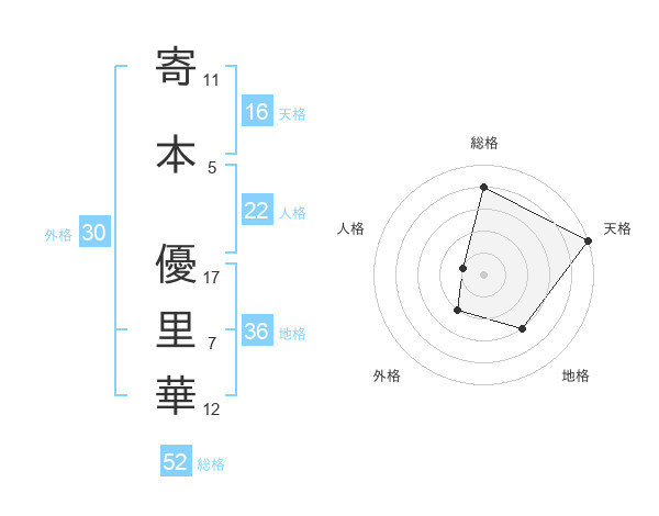 寄本 優里華さんの総格は52画の4点!