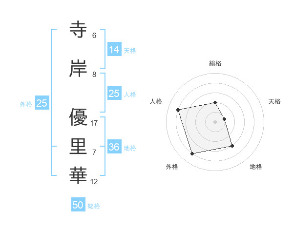 寺岸 優里華さんを姓名の画数から五運を鑑定