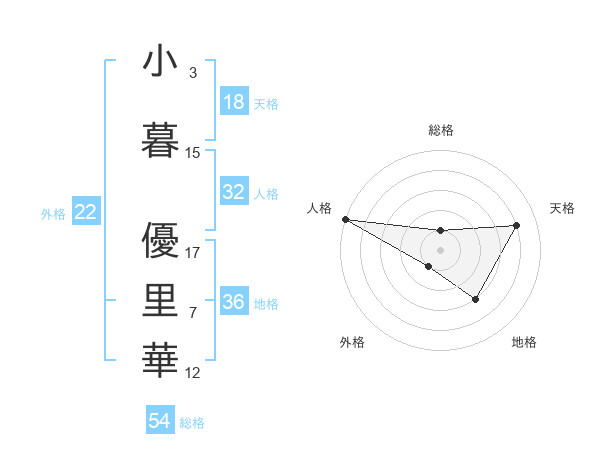 小暮 優里華さんを姓名の画数から五運を鑑定