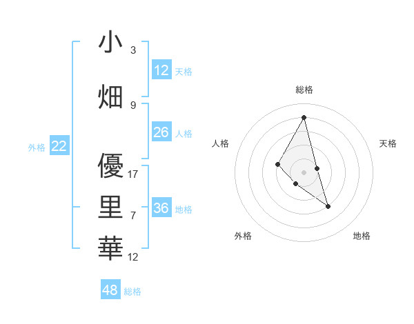 小畑 優里華さんの天格は12画の1点!