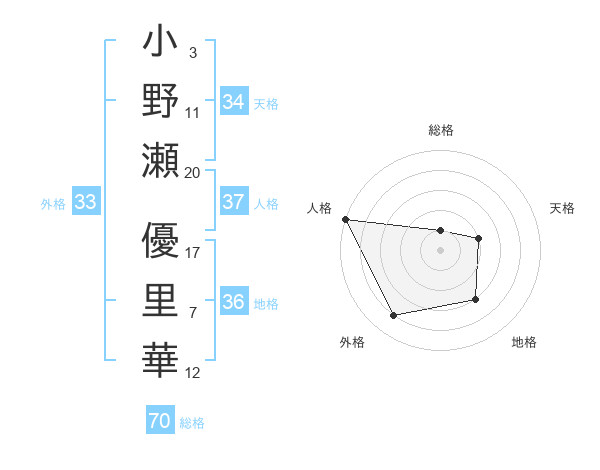 小野瀬 優里華さんを姓名の画数から五運を鑑定