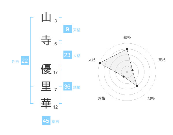 山寺 優里華さんの総格は45画の4点!