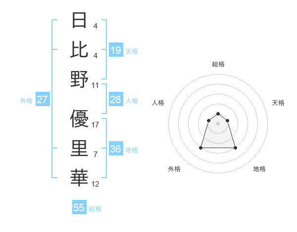 日比野 優里華さんを姓名の画数から五運を鑑定