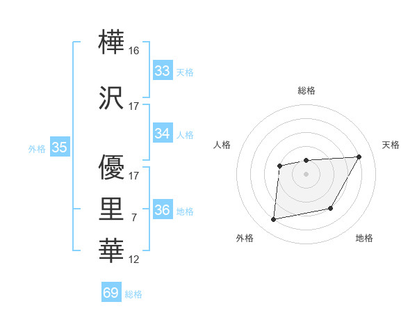 樺沢 優里華さんの外格は35画の4点!