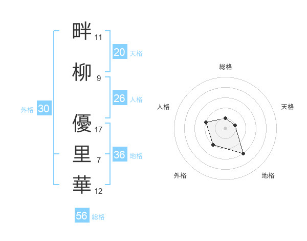 畔柳 優里華さんを姓名の画数から五運を鑑定