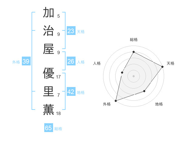 加治屋 優里薫さんを姓名の画数から五運を鑑定
