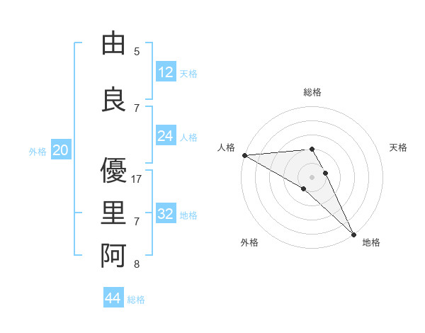 由良 優里阿さんの総格は44画の2点