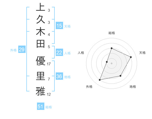 上久木田 優里雅さんの総格は51画の3点!