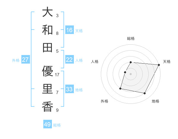 大和田 優里香さんを姓名の画数から五運を鑑定