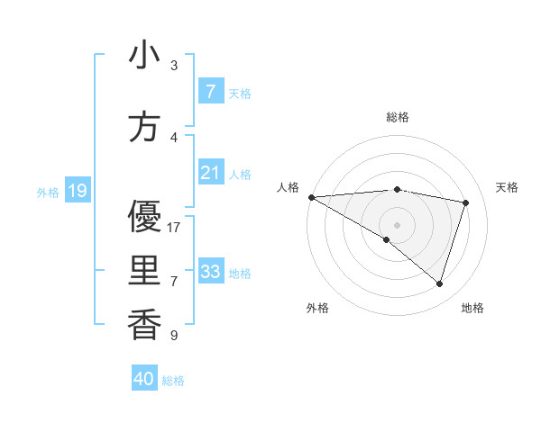 小方 優里香さんの総格は40画の2点!