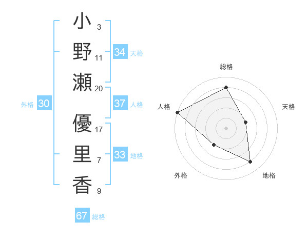 小野瀬 優里香さんを姓名の画数から五運を鑑定