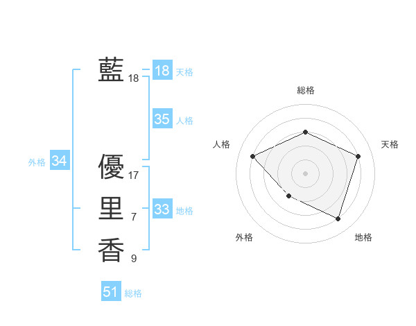 藍 優里香さんの総格は51画の3点!