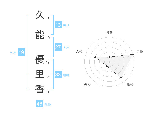 久能 優里香さんの外格は19画の1点!