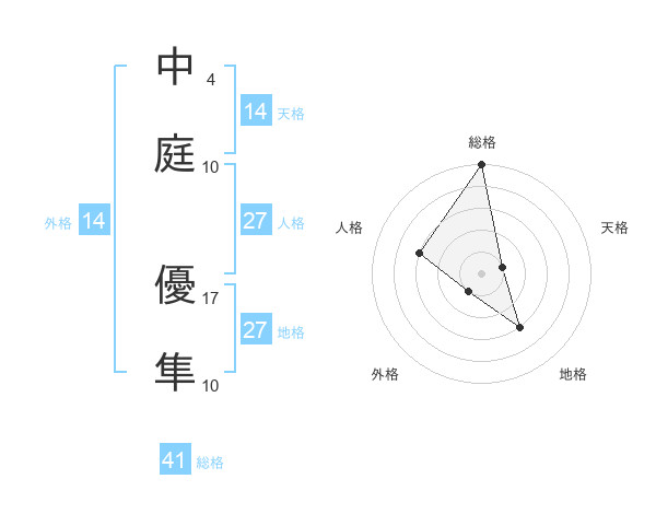 中庭 優隼さんの総格は41画の5点!
