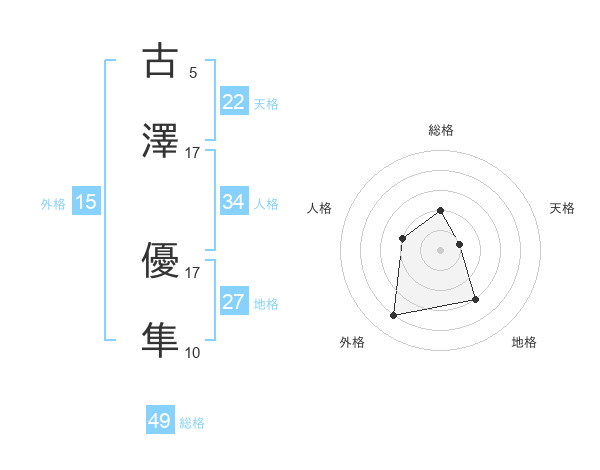古澤 優隼さんの総格は49画の2点!