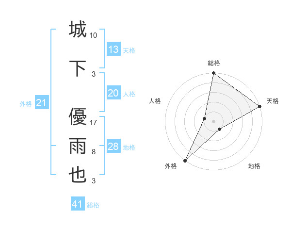 城下 優雨也さんの外格は21画の5点!