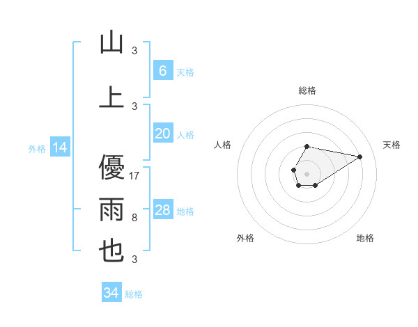 山上 優雨也さんを姓名の画数から五運を鑑定