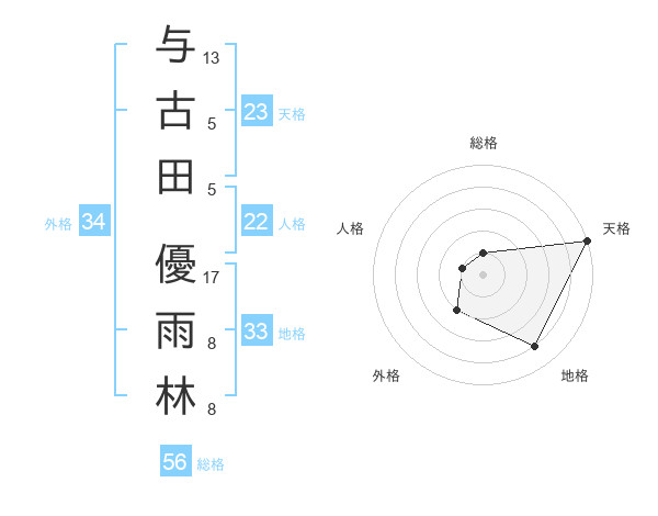 与古田 優雨林さんの天格は23画の5点!