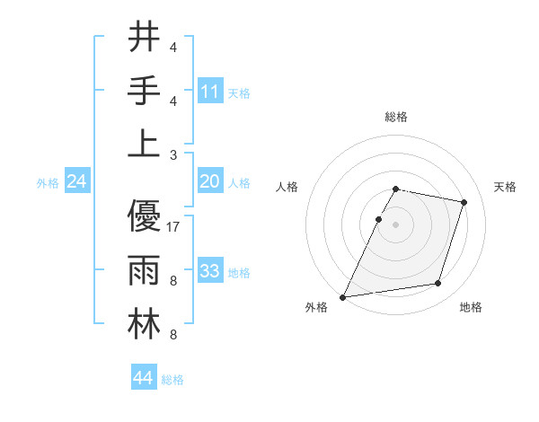 井手上 優雨林さんを姓名の画数から五運を鑑定