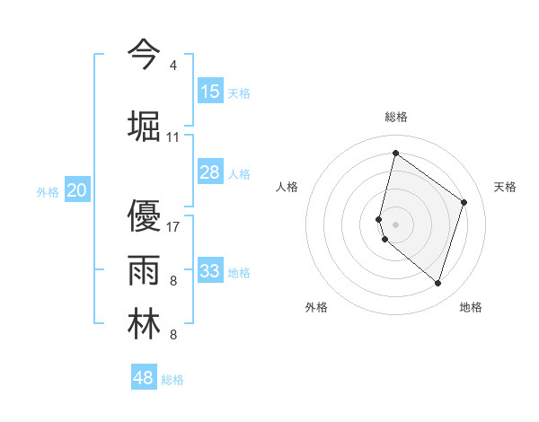 今堀 優雨林さんを姓名の画数から五運を鑑定