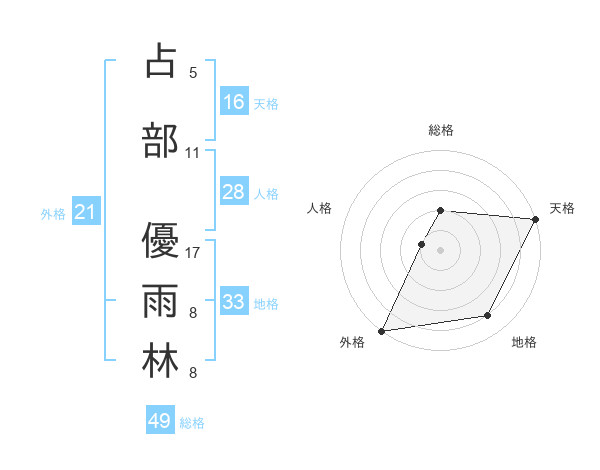 占部 優雨林さんの天格は16画の5点!